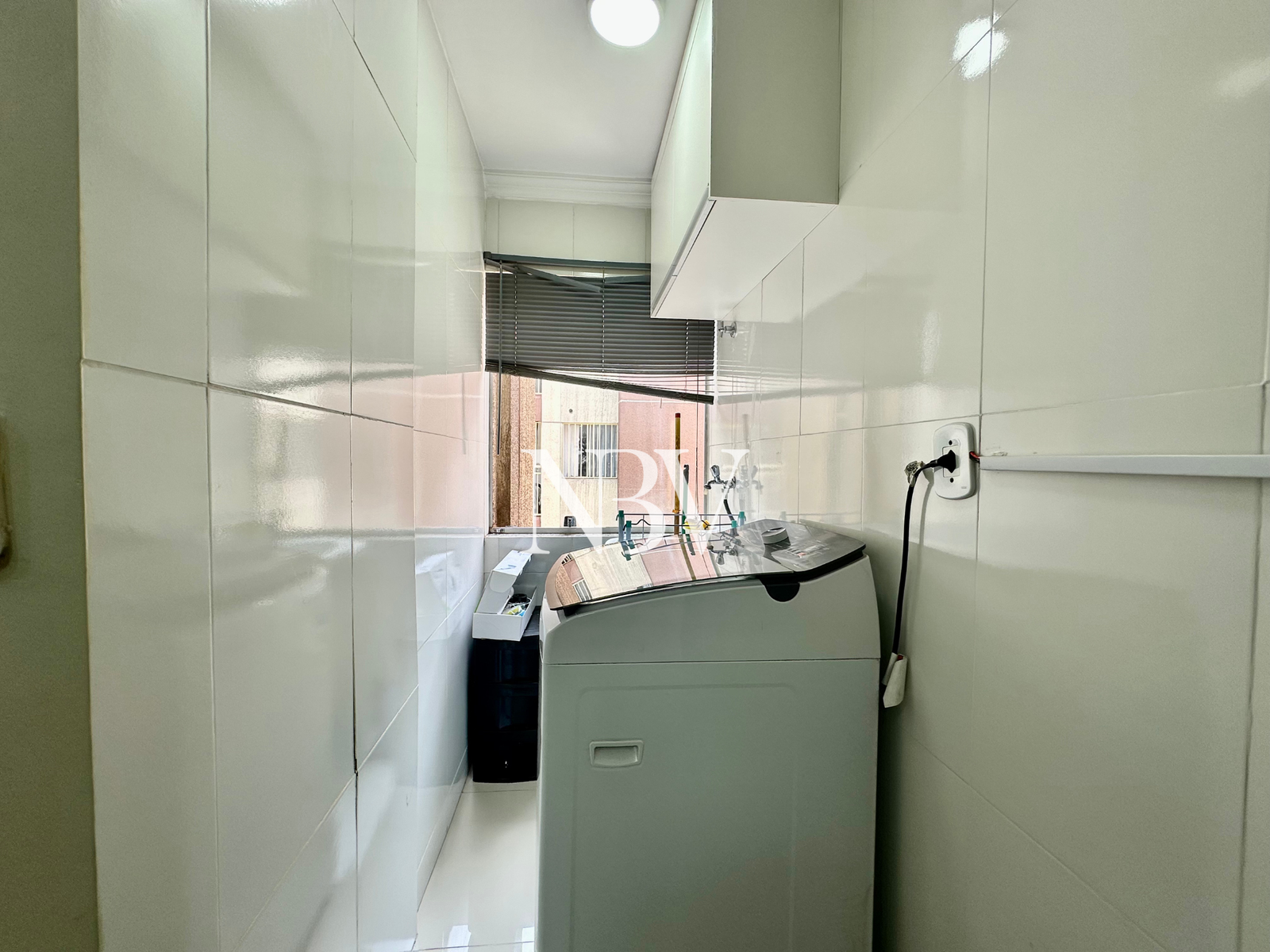 Área de Serviço Prática: Equipada com armário aéreo, máquina de lavar e varal, tornando as tarefas domésticas mais fáceis.