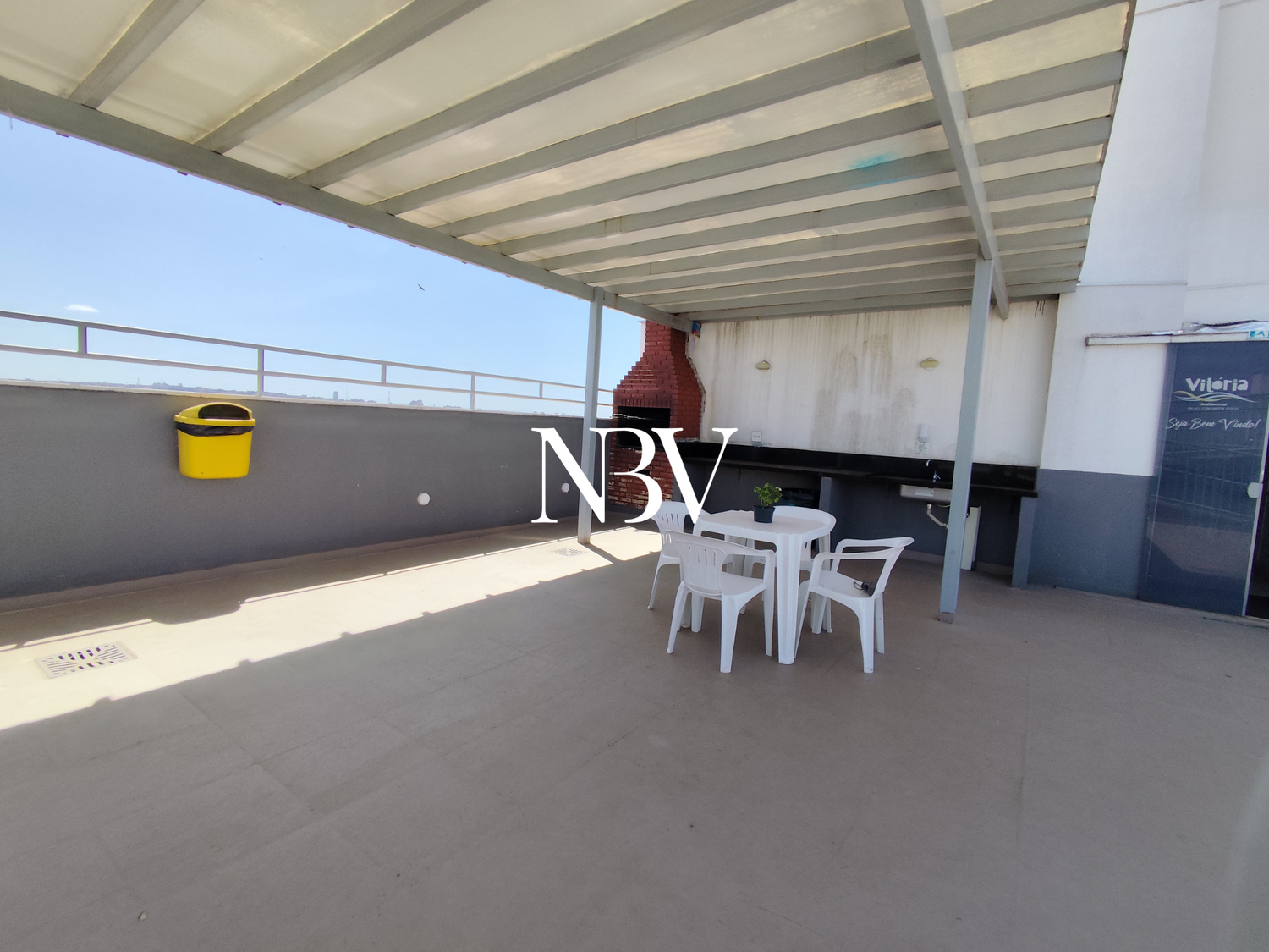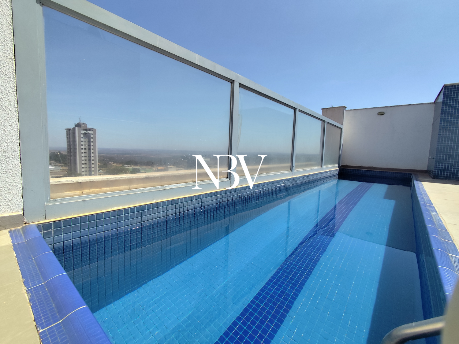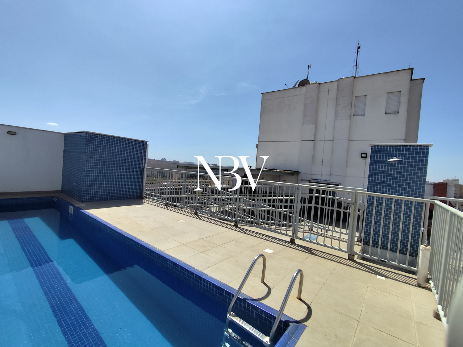 Prédio com lazer na cobertura (piscina, salão, churrasqueira).